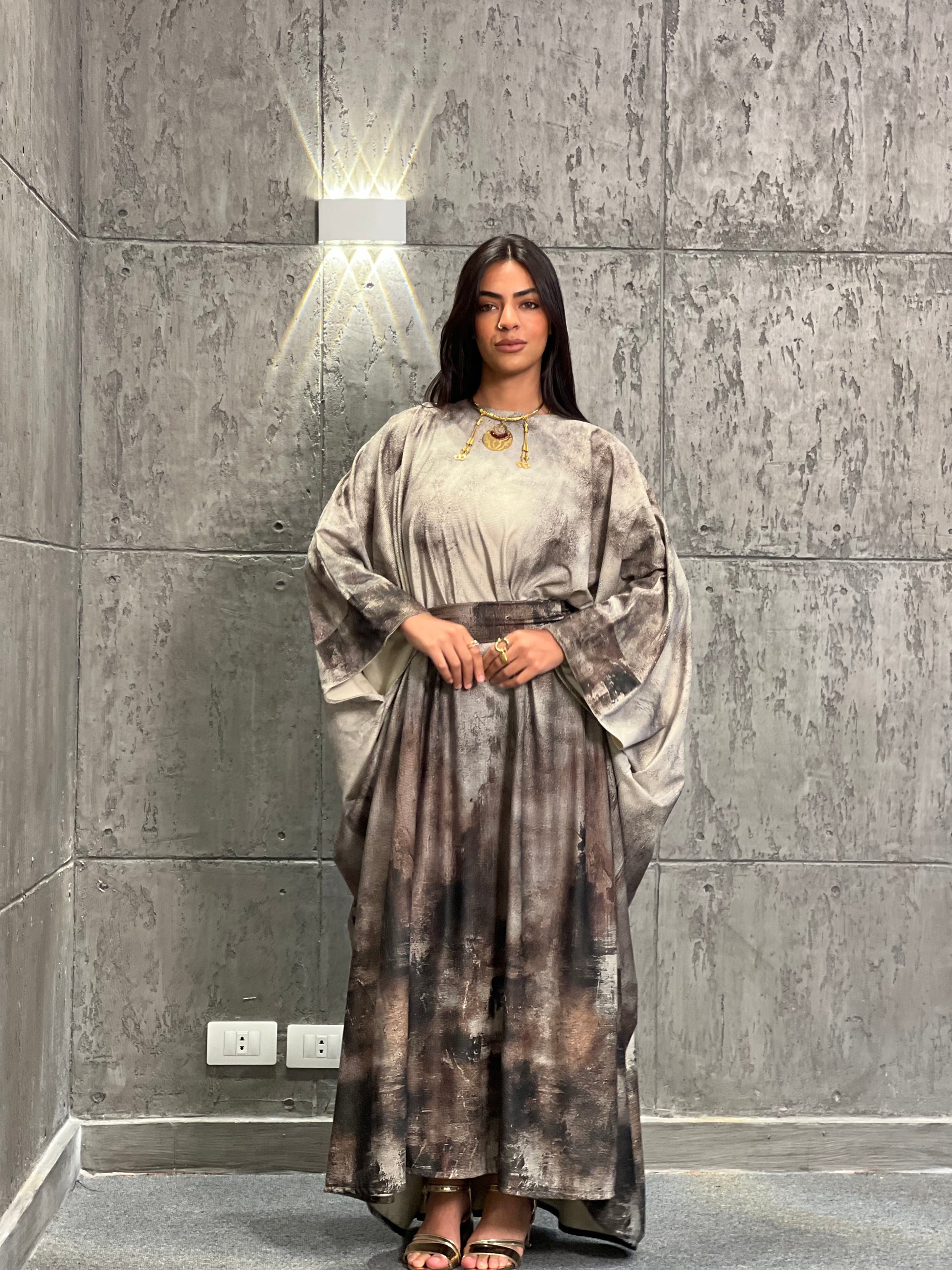 package: kaftan, belt and clutch