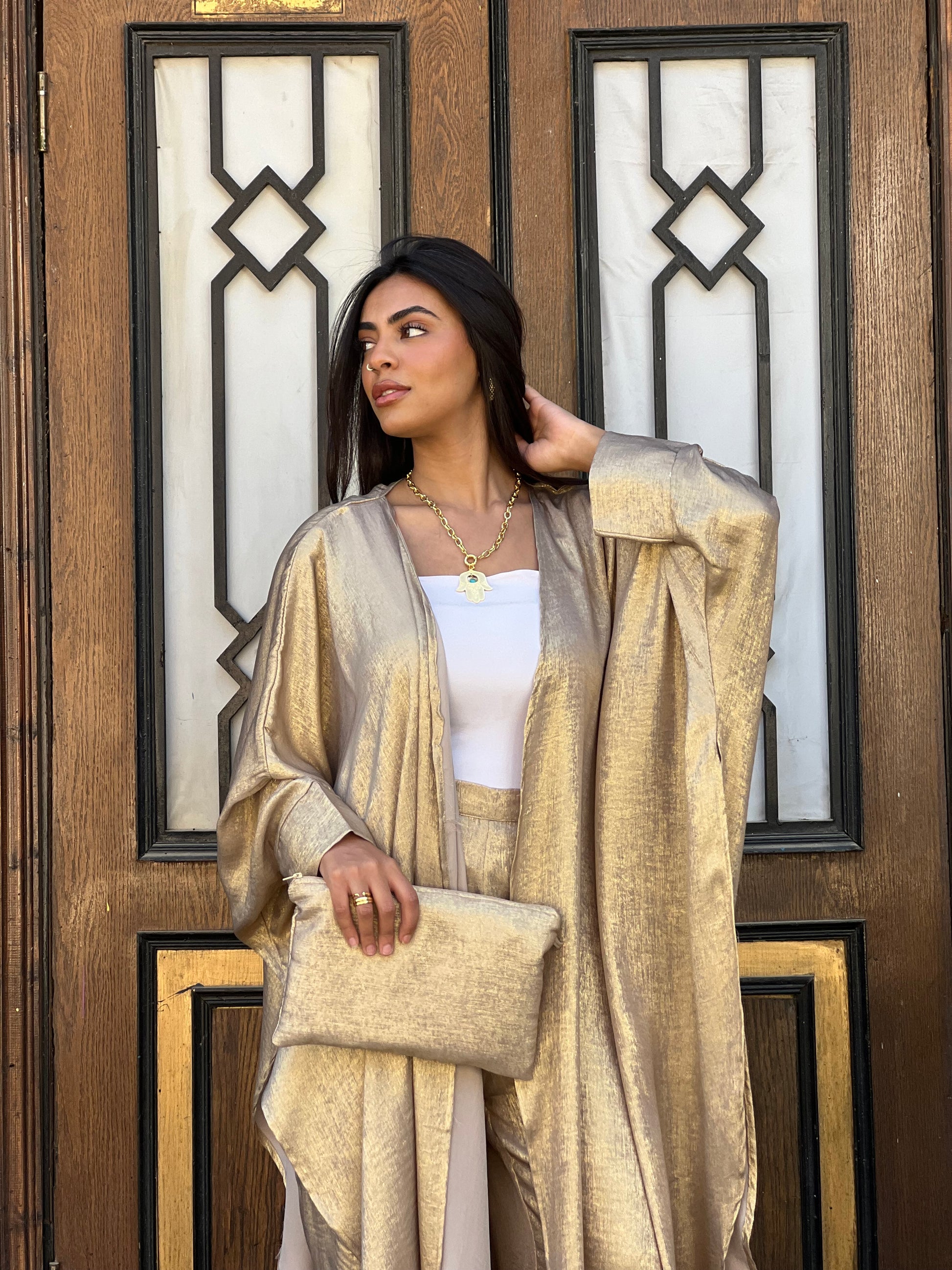 A chic set made from premium French Shimmer.